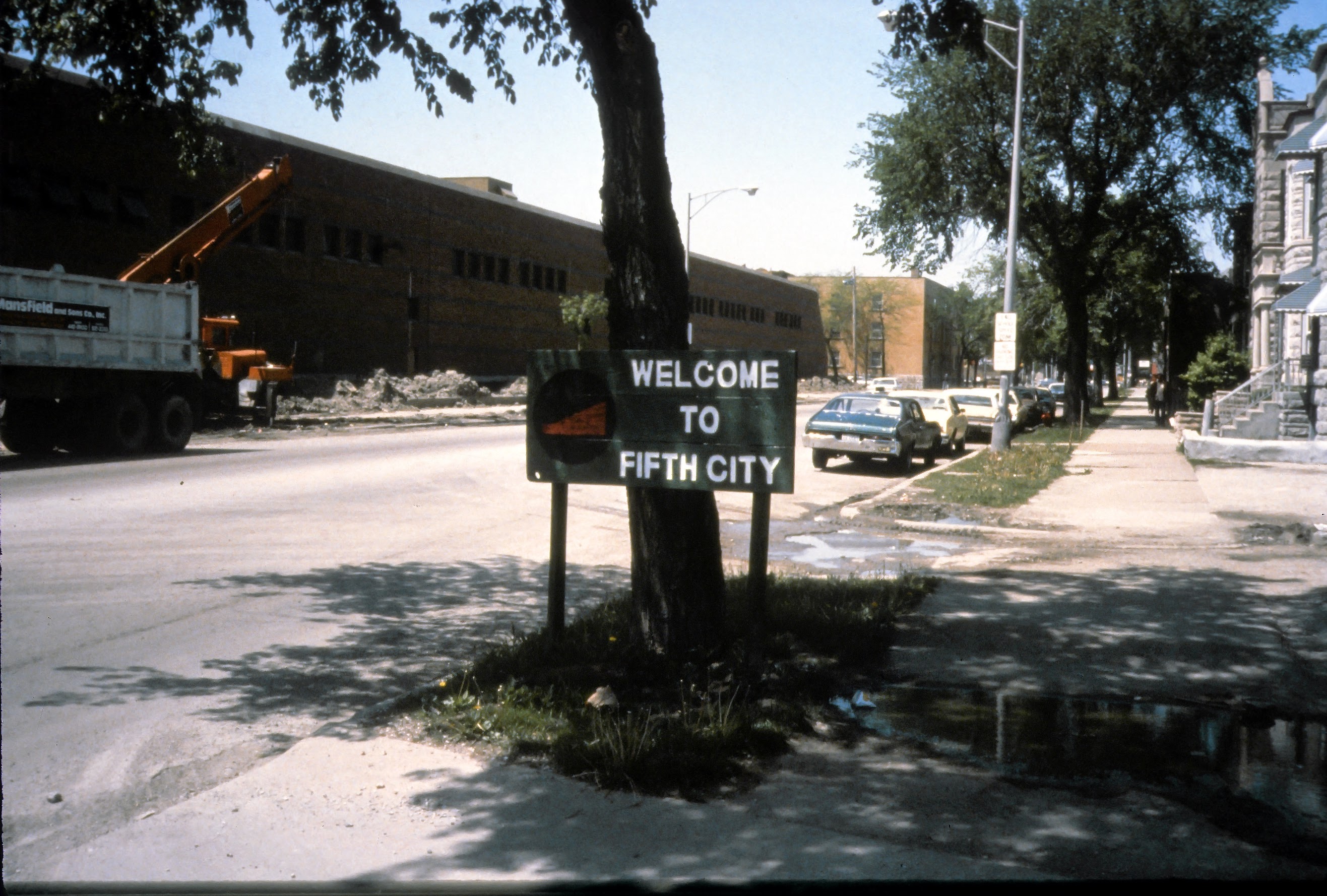 While McNeal’s performance employs dance, storytelling, and media to evoke the radical thought and action necessary to have brought about Fifth City, this exhibition mobilizes archival research to situate viewers within a trove of history to explore. We have provided a snapshot of Fifth City’s history and context. This is by no means an exhaustive study, but we hope that the material you explore here will catalyze deeper dives into the rich history of the Fifth City Movement.
